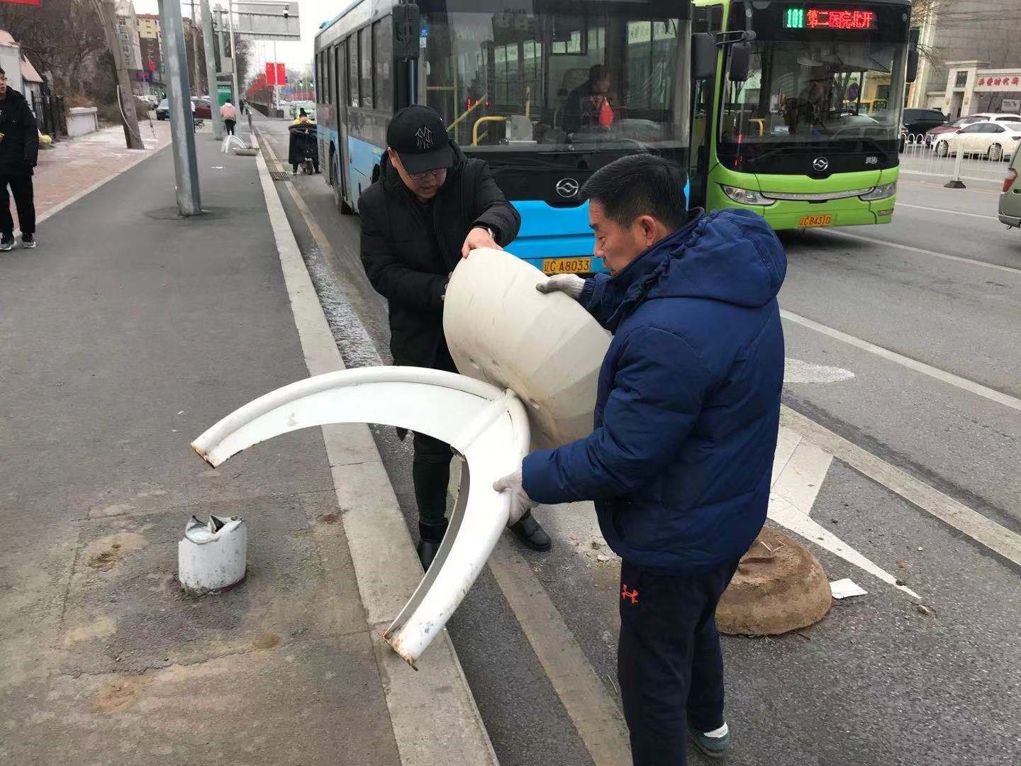12月1日,鞍山交運集團第二汽車分公司客運六隊接到駕駛員反映,興盛路上有十余個立式花壇翻倒在路上嚴重影響交通,部分花壇還倒在了公交站亭附近,對公交車進站也形成障礙。接到消息后,客運六隊領導立即組織人員上線排查,在興盛路和民生路交界處,由南向北方向發(fā)現(xiàn)了翻倒的花壇,平均20米左右一個,共10余個,長度大約300米,有的還在快車道上,造成車輛通行困難,存在極大安全隱患。六隊領導馬上帶領大家一邊疏導車輛安全通行,一邊動手搬除障礙物,經過半個小時的努力,將花壇全部歸位,排除了道路交通安全隱患,確保該路段車輛正常的通行秩序。此舉得到了路過車輛司機揮手致意,及圍觀市民的點頭稱贊,他們的做法無形中也在寒冷的冬季給人們帶來一份溫暖和感動,更提升了交運集團服務于民的正能量形象,為他們點贊!